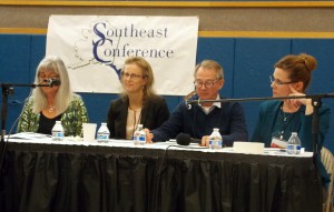 The Maritime Works panel sits in front of the Southeast Conference gathering, Sept. 20, in Petersburg. (from left) Kris Norosz, Julie Decker, Doug Ward, Cari Ann Carty. Photo/Angela Denning