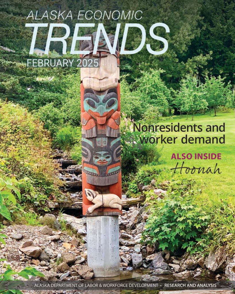 In this month’s feature article, Rob Kreiger, economist with the Alaska Dept. of Labor and Workforce Development, examines the rise of nonresident workers across Alaska’s industries. In 2023, the number hit its highest since 1995 — nonresidents being 22.5% of the state’s workforce.