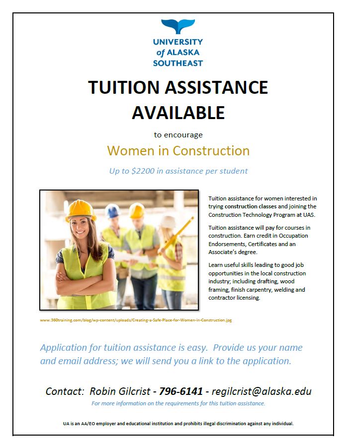 Up to $2200 in tuition assistance available per student to encourage women in construction.
